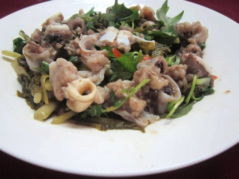 Món cuống họng bò xào dưa chua